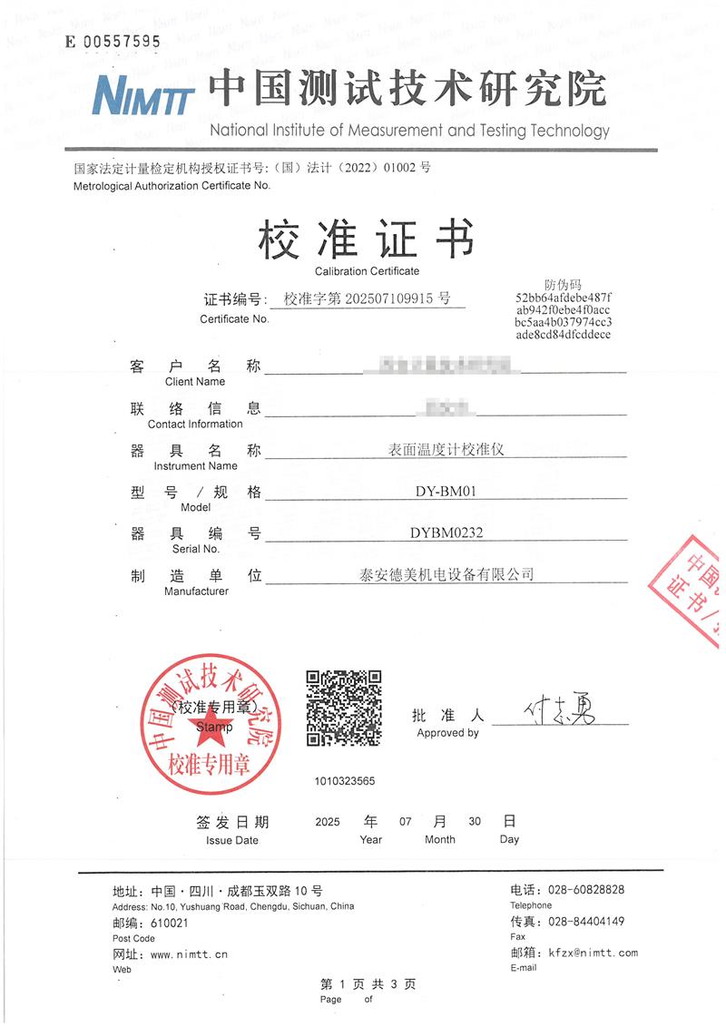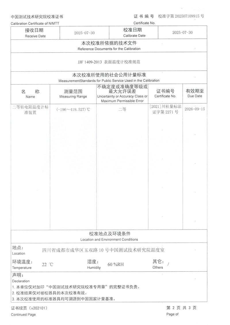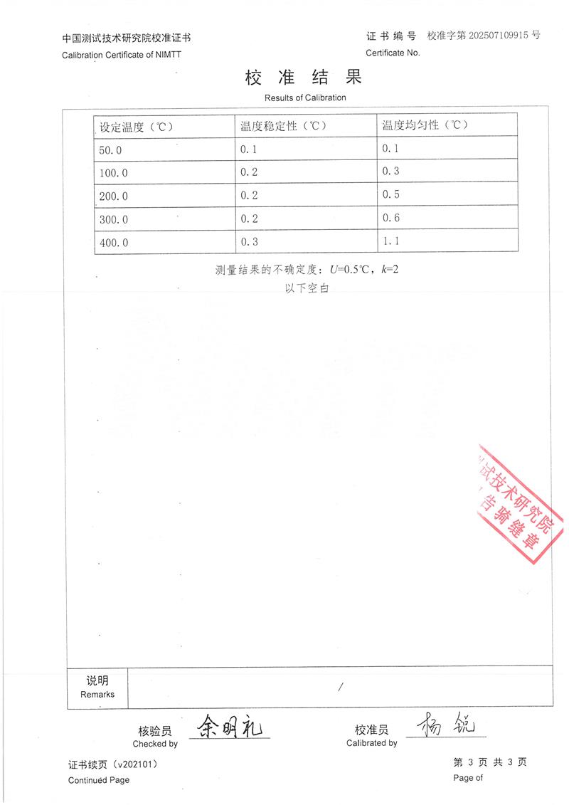 上一條:高精度低溫黑體(-10-100℃)校準證書(shū) | 下一條:超低溫面源黑體爐(-40-80℃)校準證書(shū) |