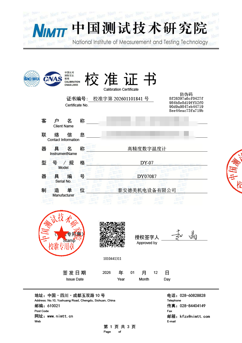 高精度數(shù)字溫度計(jì)-校準(zhǔn)證書 2026-1-26 本文被閱讀 221 次