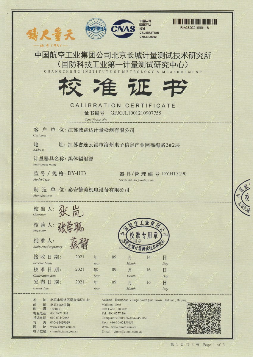 江蘇誠益達計量檢測有限公司-黑體輻射源 2021-9-29 本文被閱讀 14863 次
