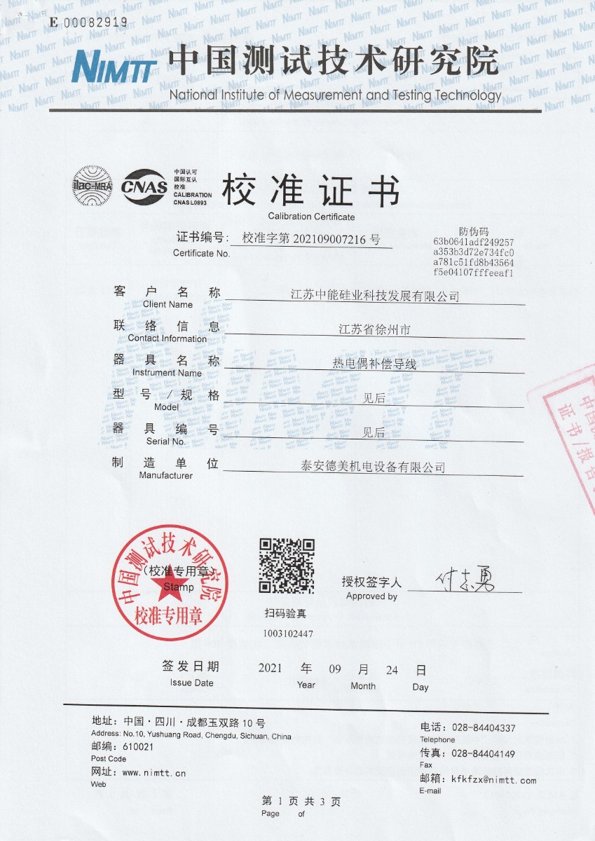 江蘇中能硅業(yè)科技發(fā)展有限公司-熱電偶補償導線(xiàn) 2021-9-29 本文被閱讀 13977 次