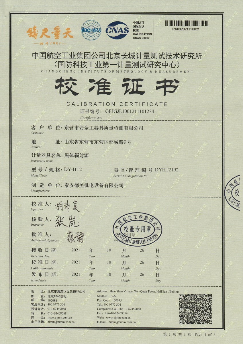 | 上一條:東營(yíng)市安全工器具質(zhì)量檢測有限公司-黑體輻射源(-15-80℃) | 下一條:露點(diǎn)儀檢定證書(shū) |
