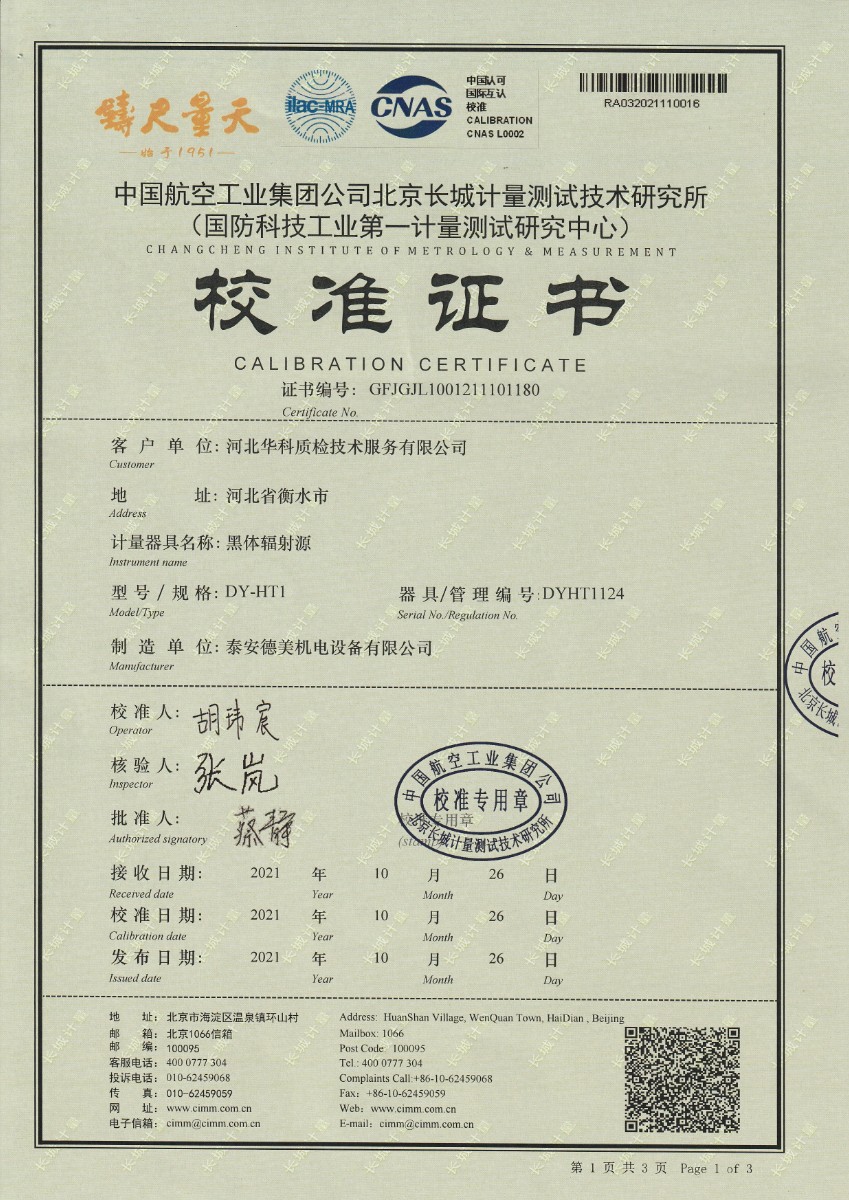 | 上一條:東營(yíng)市安全工器具質(zhì)量檢測有限公司-黑體輻射源(50-500℃) | 下一條:露點(diǎn)儀檢定證書(shū) |