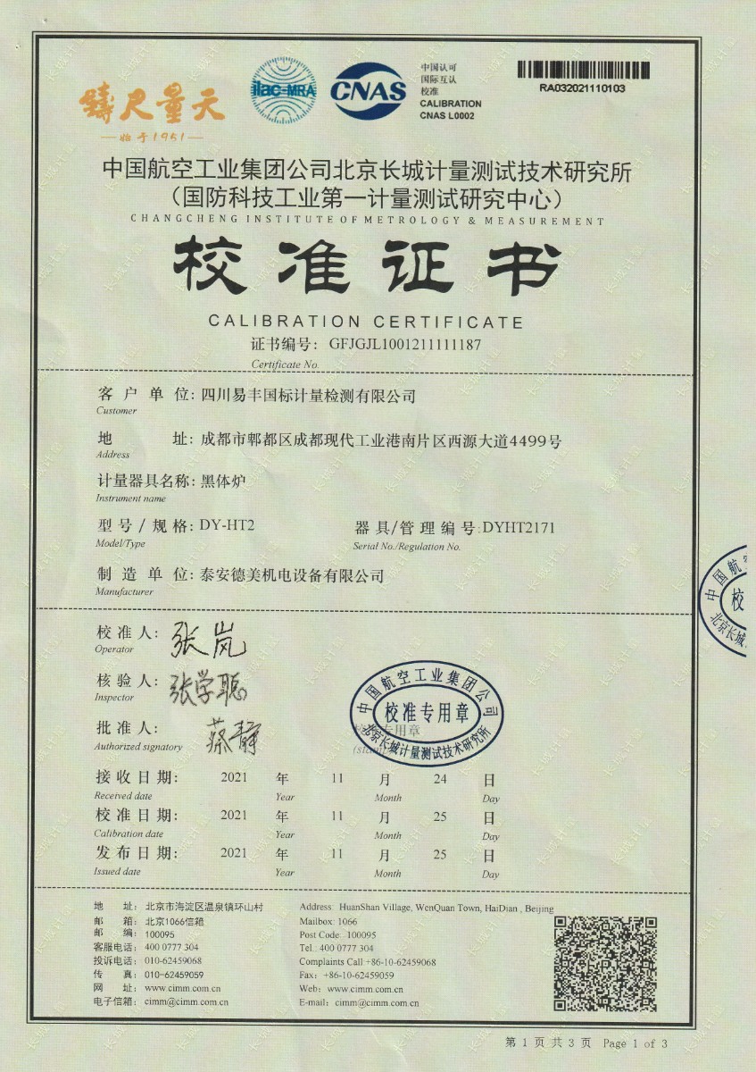 四川易豐國際計量檢測有限公司-黑體爐 2021-12-3 本文被閱讀 14116 次