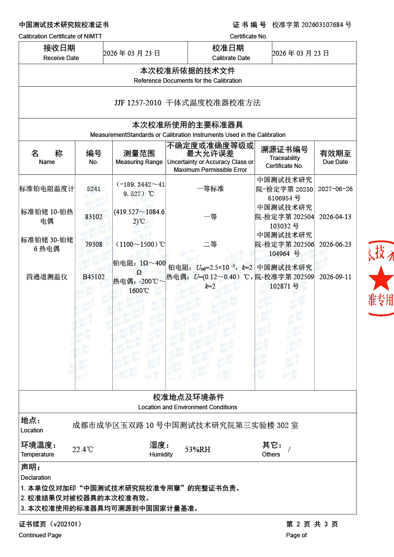高溫干體爐-校準(zhǔn)證書 2026-3-25 本文被閱讀 83 次