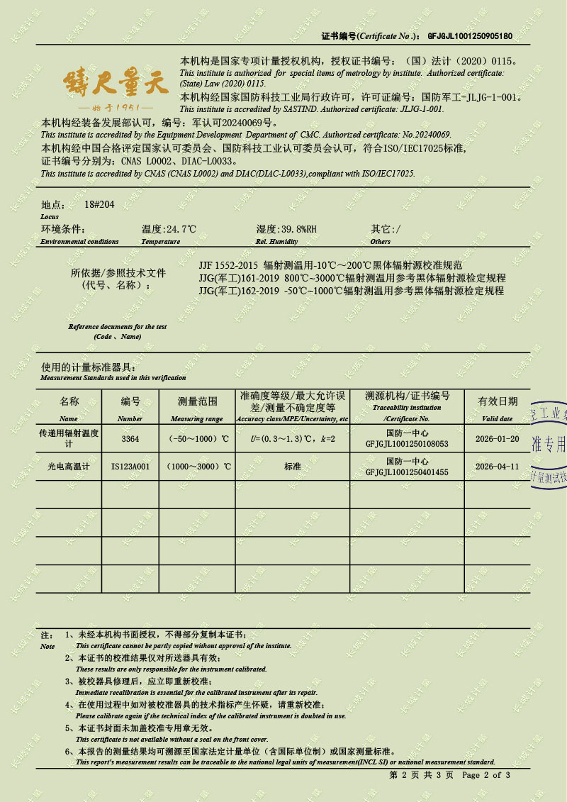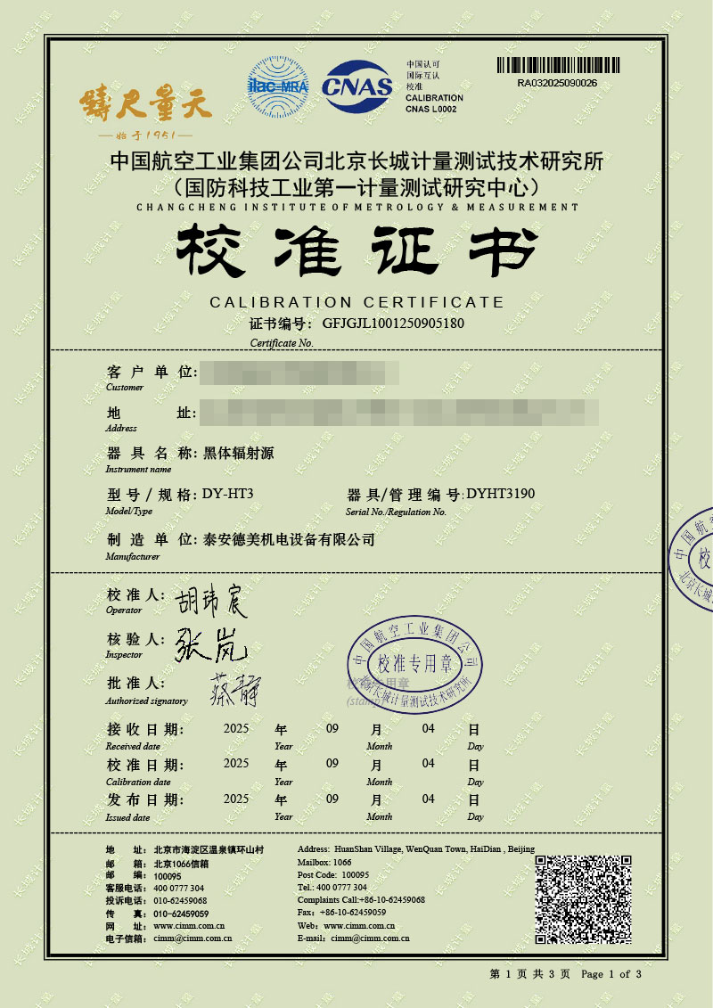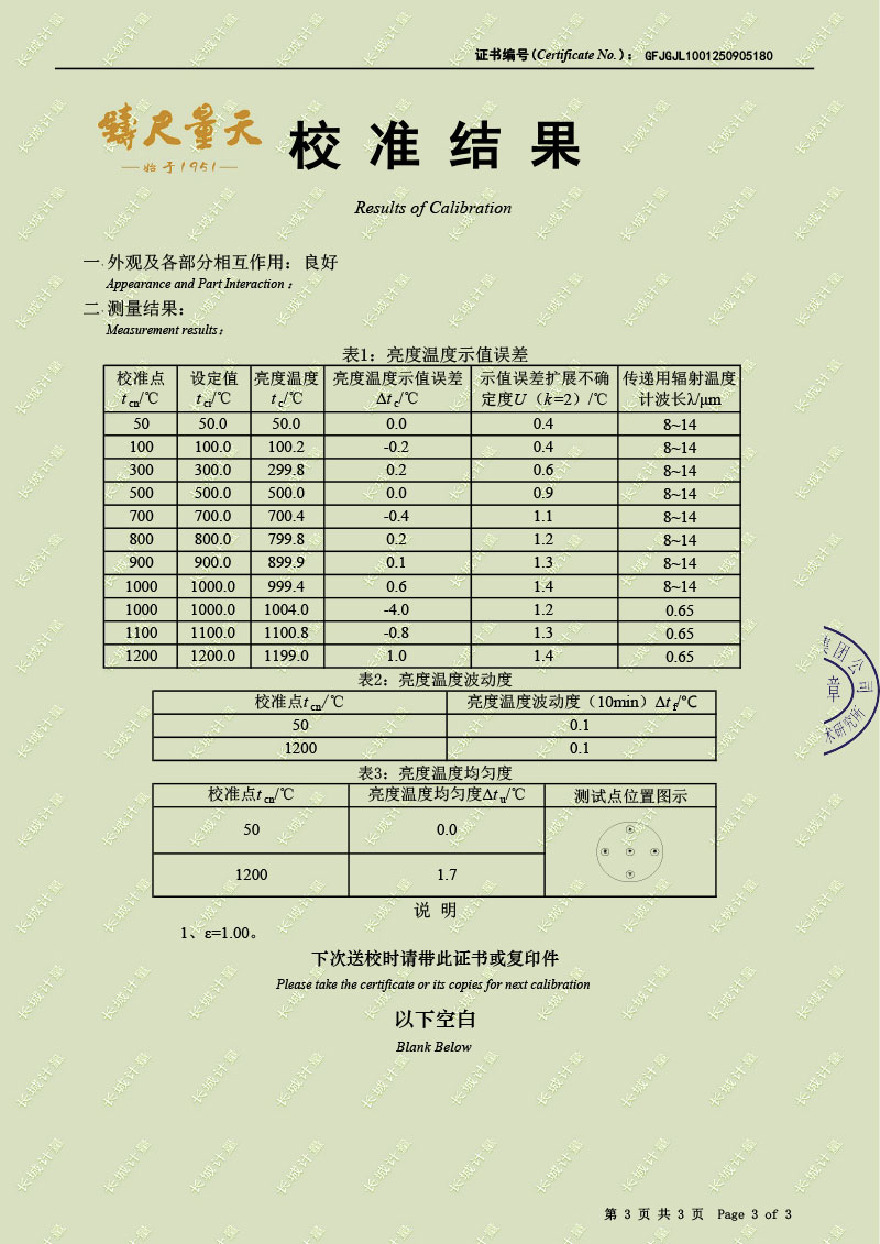 黑體輻射源(50-1200℃)校準證書(shū) 2025-9-22 本文被閱讀 657 次