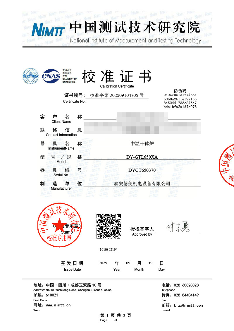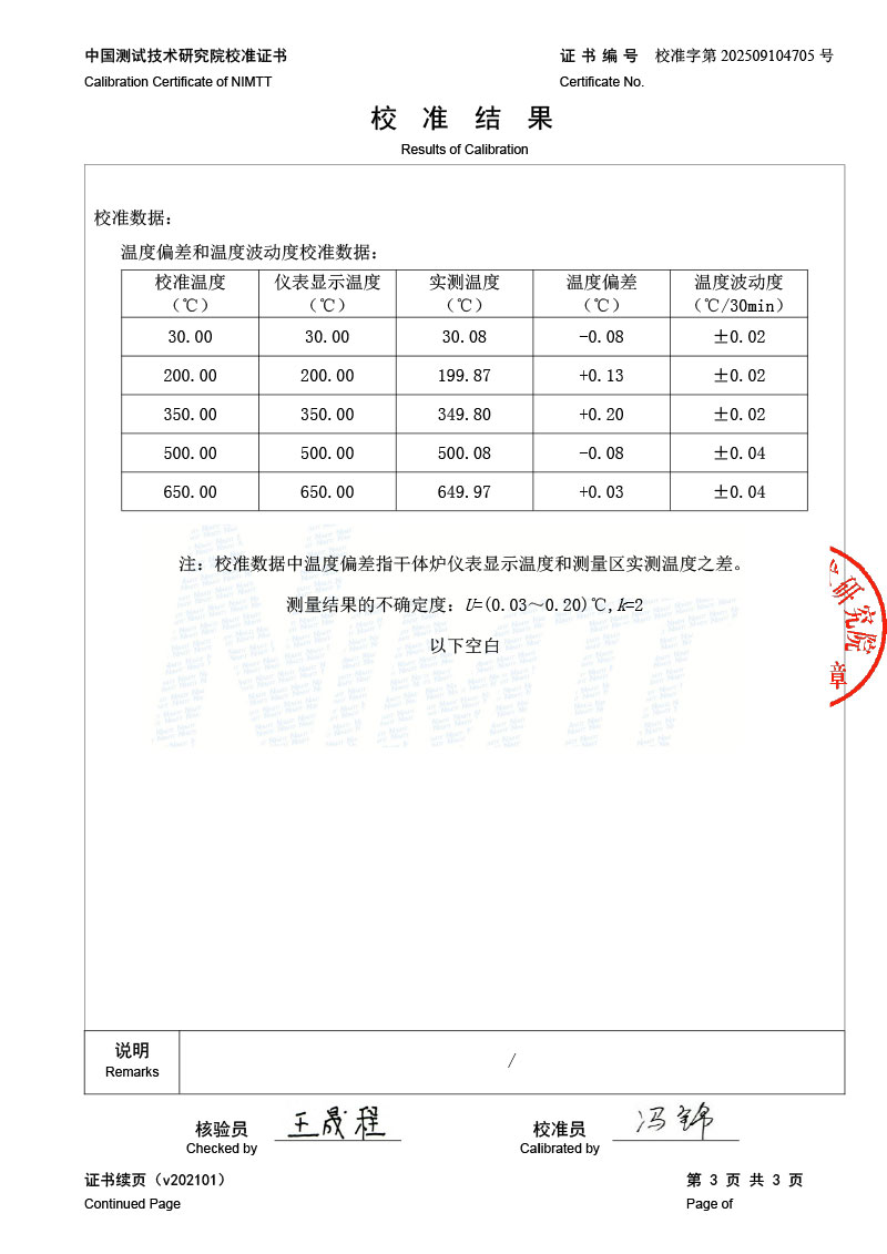 中溫干體爐(30-650℃)校準證書(shū) 2025-9-22 本文被閱讀 815 次