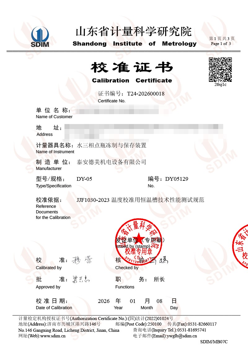水三相點瓶凍制與保存裝置校準證書 2026-1-13 本文被閱讀 659 次