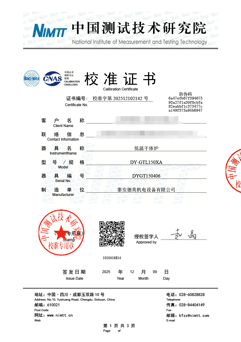 低溫干體爐校準證書(shū) 2025-12-11 本文被閱讀 29 次