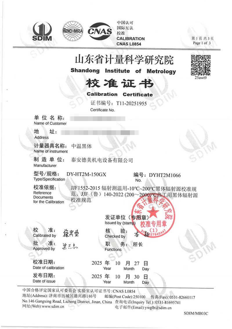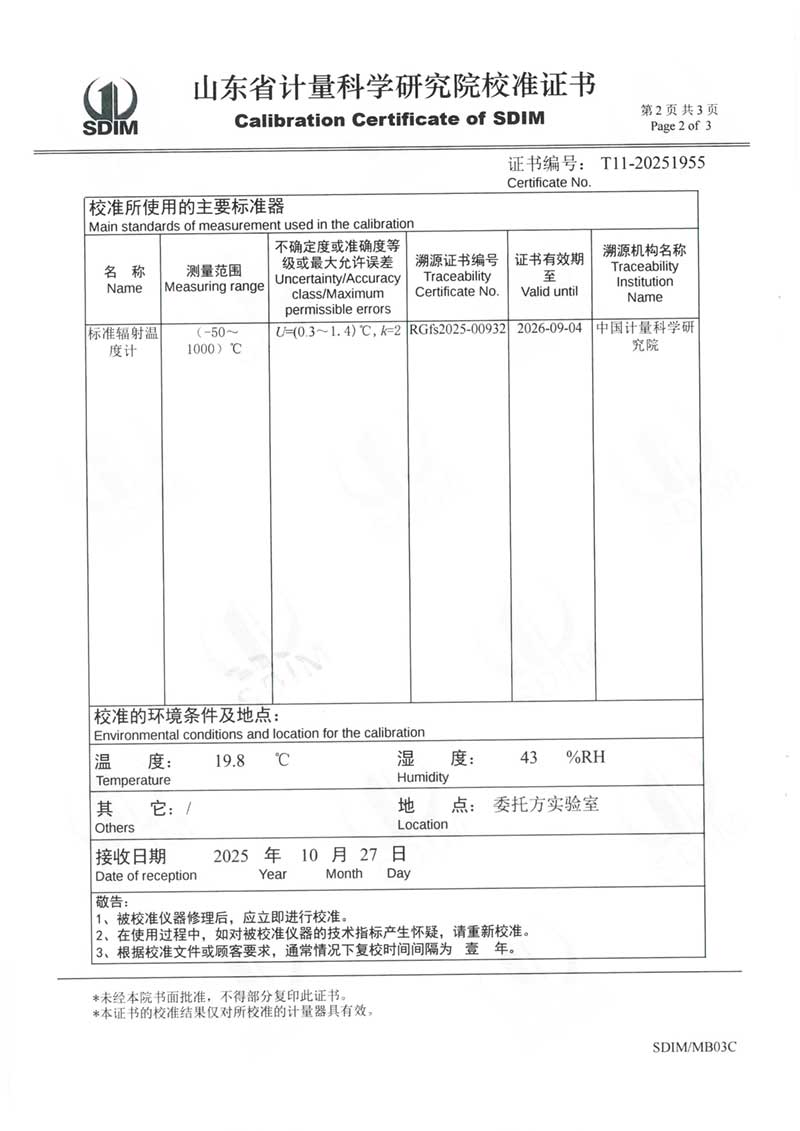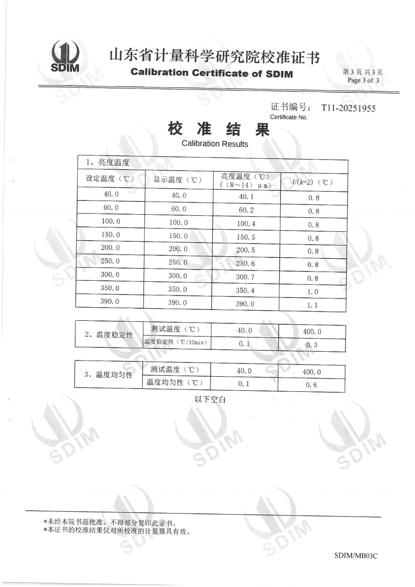 中溫黑體(室溫+5~400℃)校準證書(shū) 2025-11-5 本文被閱讀 38 次
