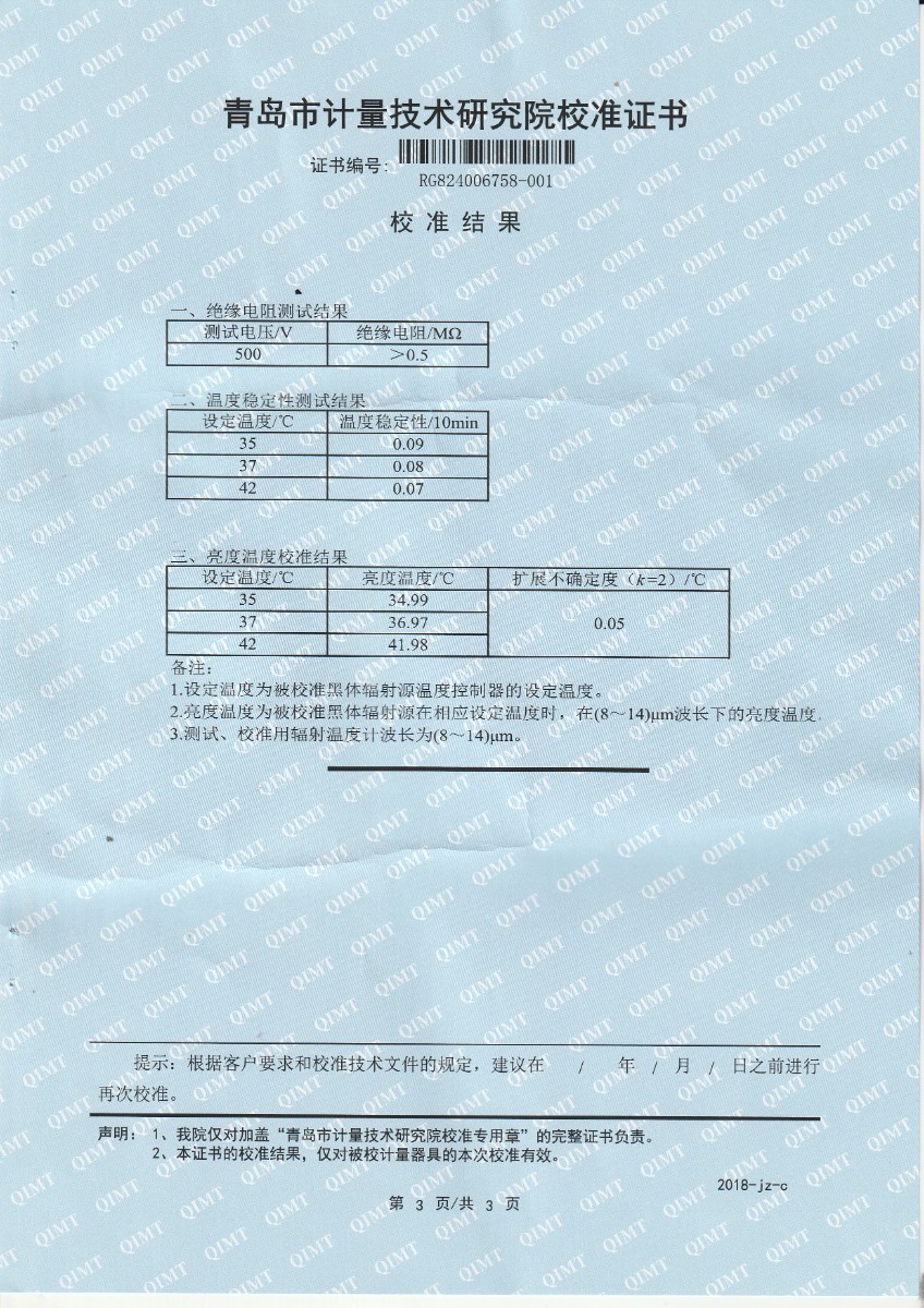 上一條:DY-08臺式雙通道測溫儀下一條:超低溫面源黑體爐(-40-80℃)校準證書(shū)