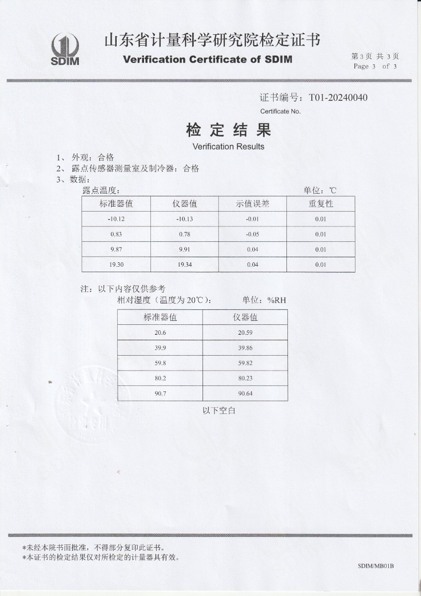 冷鏡式露點(diǎn)儀檢定證書(shū)