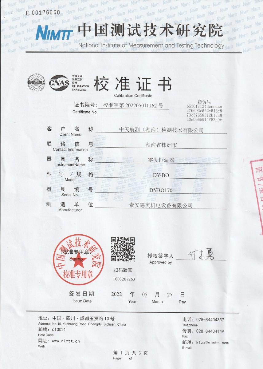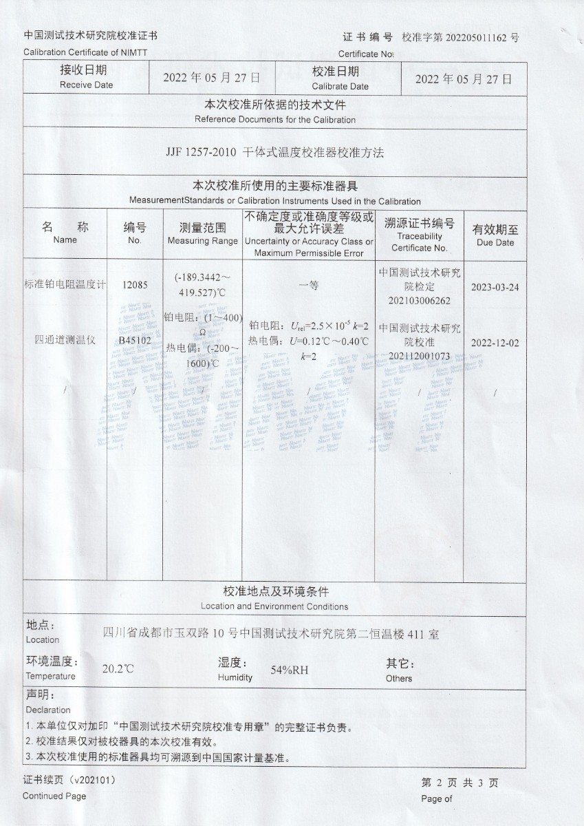 | 上一條:信義光伏產(chǎn)業(yè)(安徽)控股有限公司便攜式溫濕度檢定箱 | 下一條:超低溫面源黑體爐(-40-80℃)校準證書(shū) |