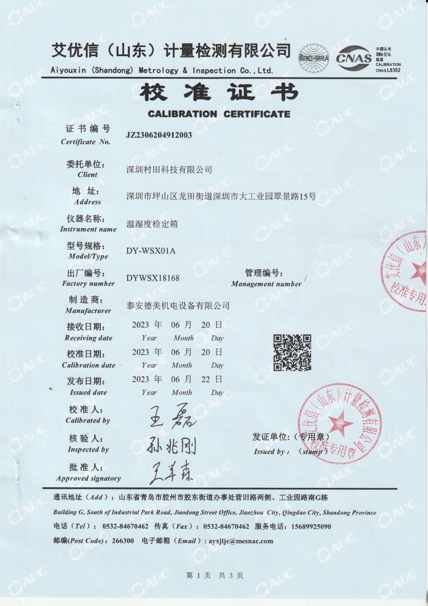 深圳村田科技有限公司-溫濕度檢定箱 2023-7-3 本文被閱讀 11117 次