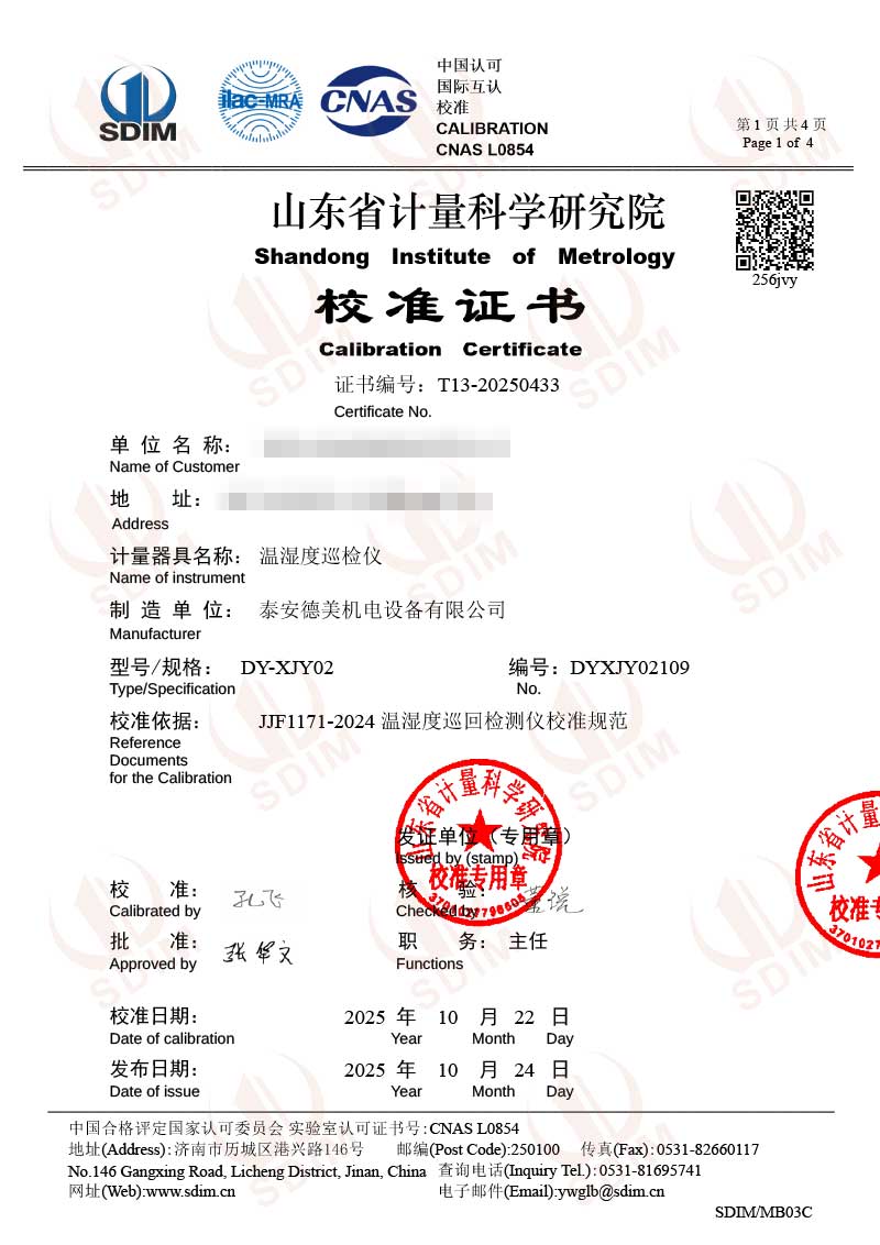 溫濕度巡檢儀校準證書(shū) 2025-10-30 本文被閱讀 150 次
