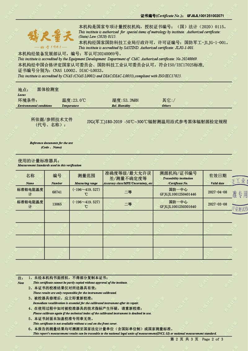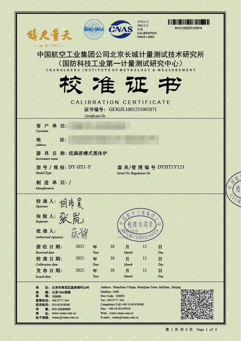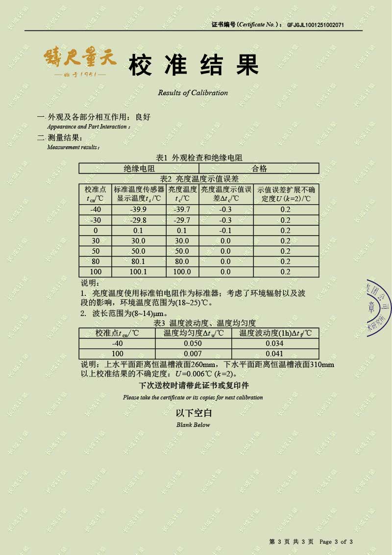 低溫液槽式黑體爐(-40-100℃)校準證書(shū) 2025-10-30 本文被閱讀 139 次